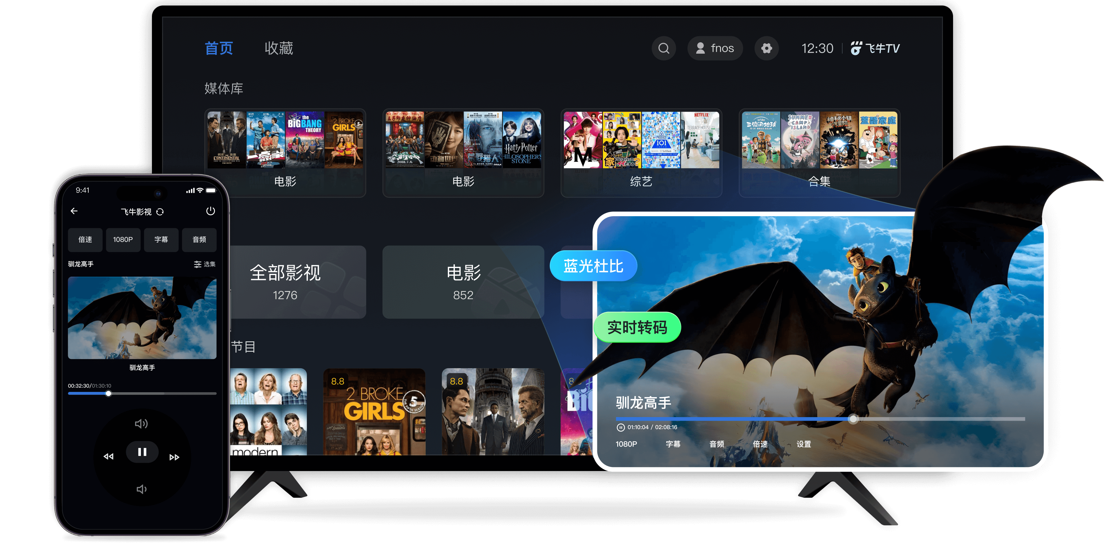 兼容主流硬件智能转码,多端同步,支持蓝光杜比,影视TV端享受极致视听